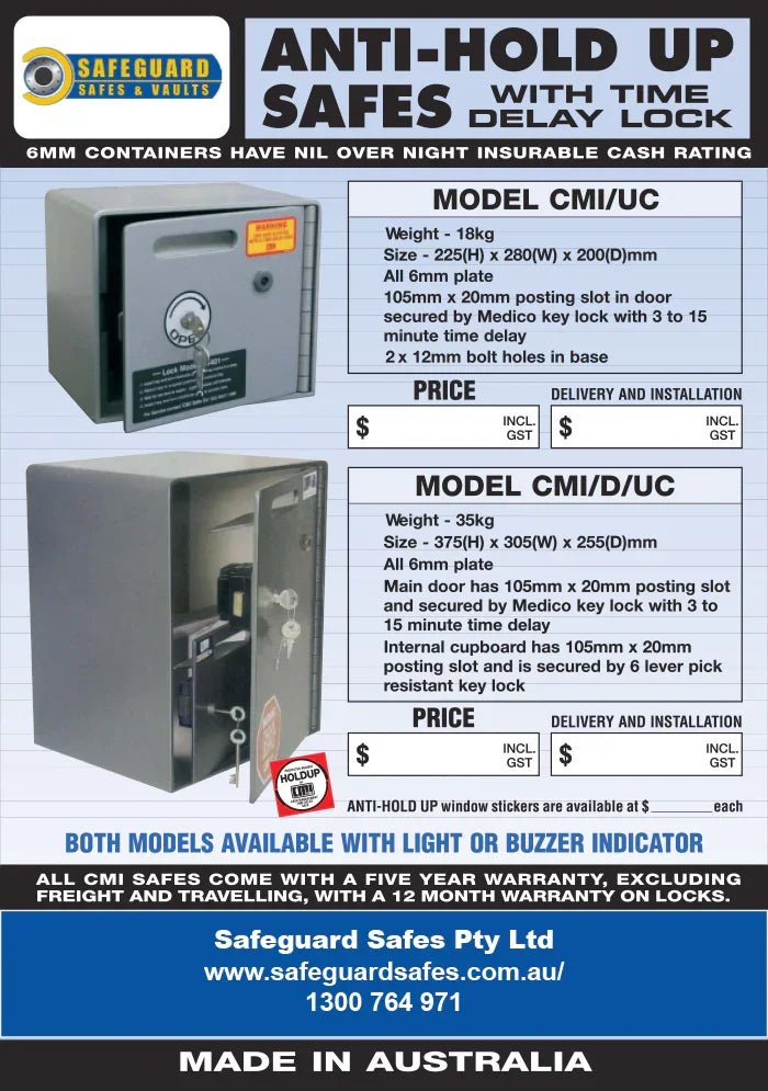 - ANTI-HOLD UP window stickers are available. Additional cost applies.