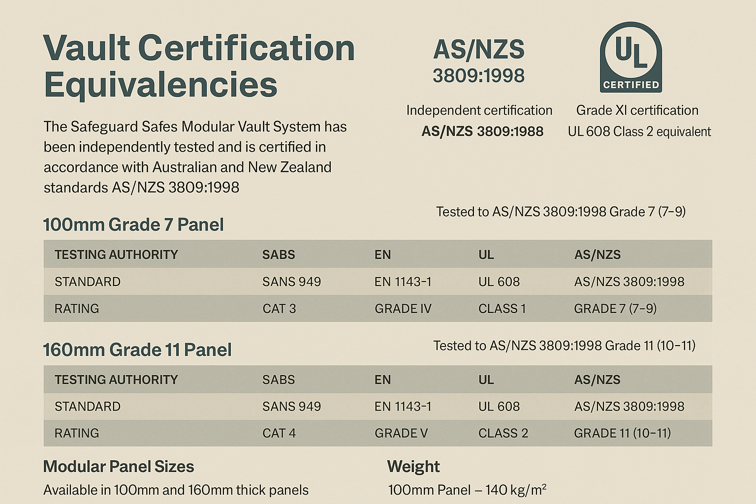 Certified to AS/NZS 3809:1998 - Independently tested to Grade 11 – UL608 Class 2 equivalent